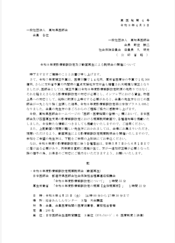 令和8年度診療報酬改定及び動画再生による説明会の開催について