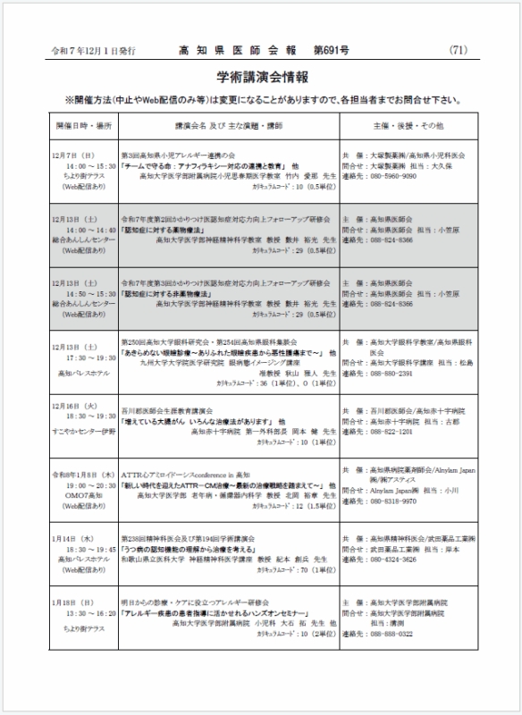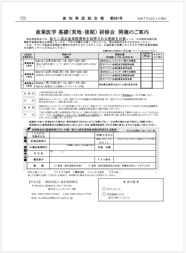 【会員専用】高知県医師会報12月号を掲載いたしました 医師・医療機関の皆様へ感染症について新着情報産業医単位取得可能研修会研修会について2025年12月01日 詳細はこちらをご覧ください。 ※会員専用ページへログインするにはIDおよびパスワードが必要となります。 ご不明な場合は高知県医師会事務局までご連絡ください。 続きを読む