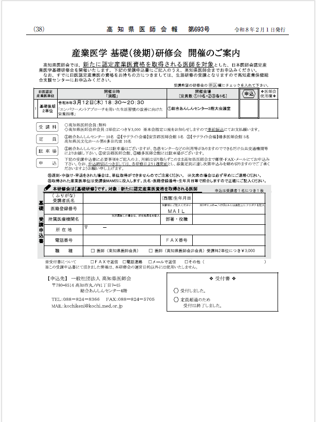詳細はこちらをご覧ください。   ※会員専用ページへログインするにはIDおよびパスワードが必要となります。 ご不明な場合は高知県医師会事務局までご連絡ください。